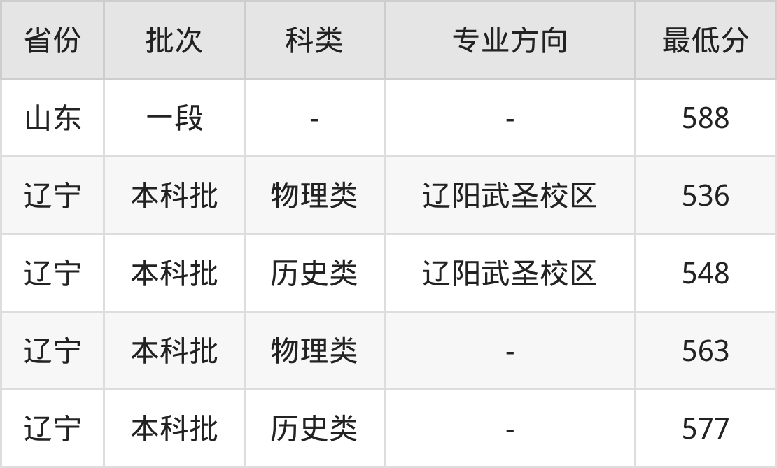 | 本科批 | 历史类 | 辽阳武圣校区 | 548 | 7269 |