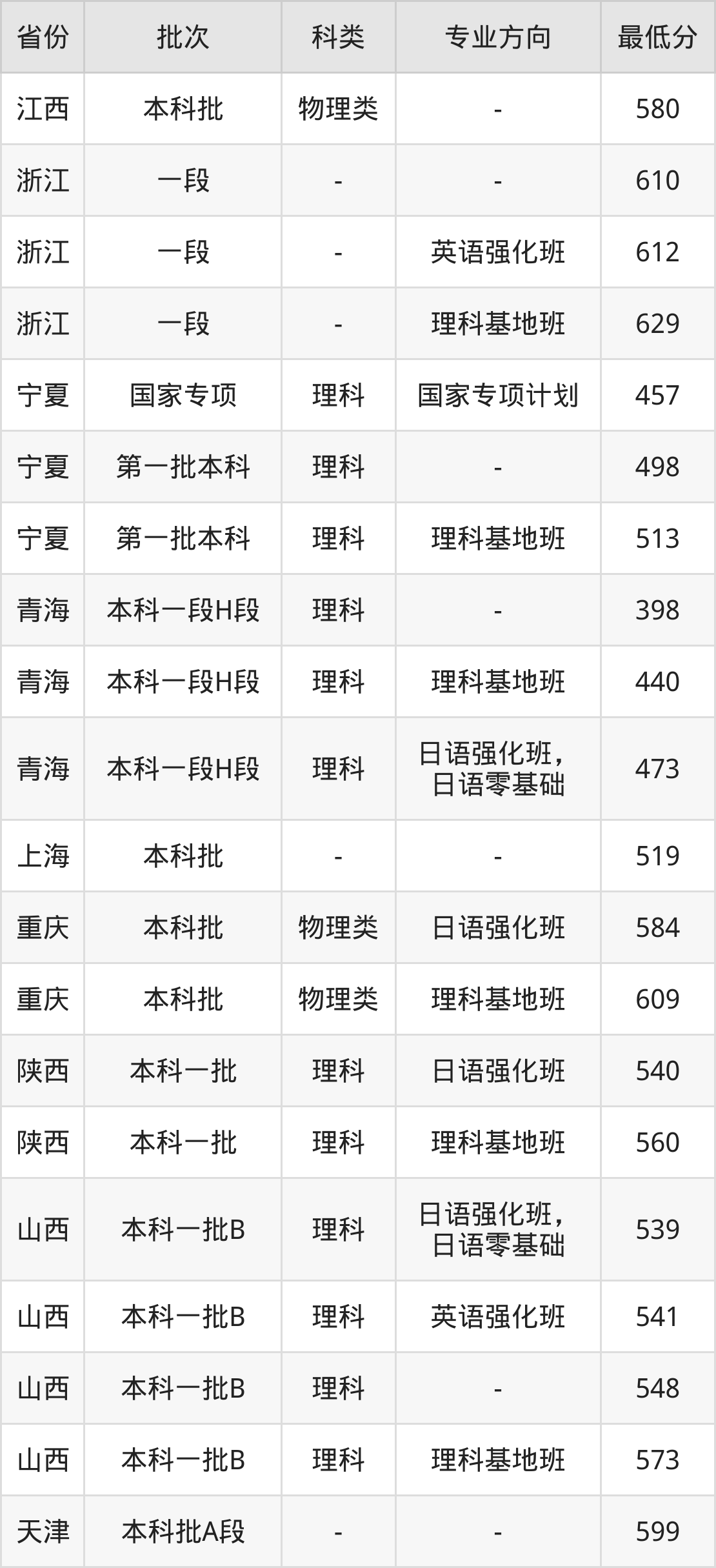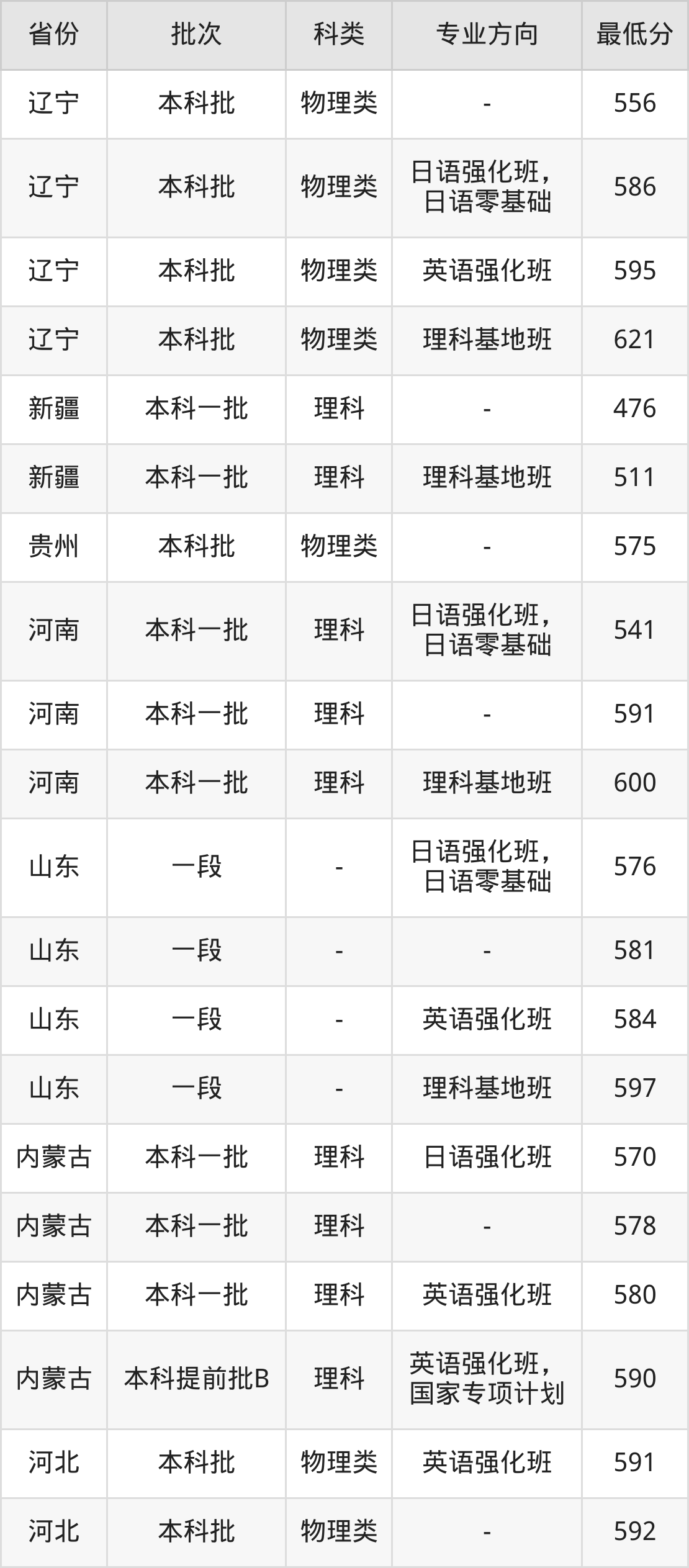 | 本科批 | 物理类 | 日语强化班, 日语零基础 | 586 | 18830 |
