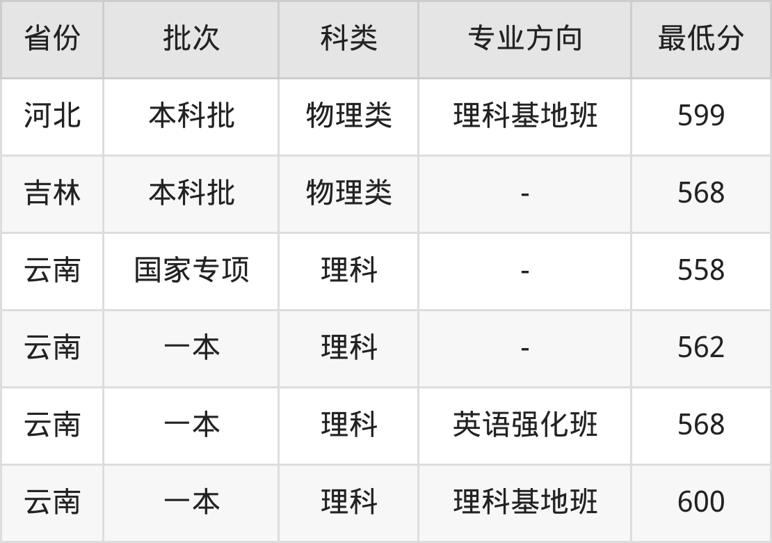 理科558分(位次20864名),理科562分(位次19351名),理科568分(英语强化班、位次17096名),理科600分(理科基地班、位次7650名);