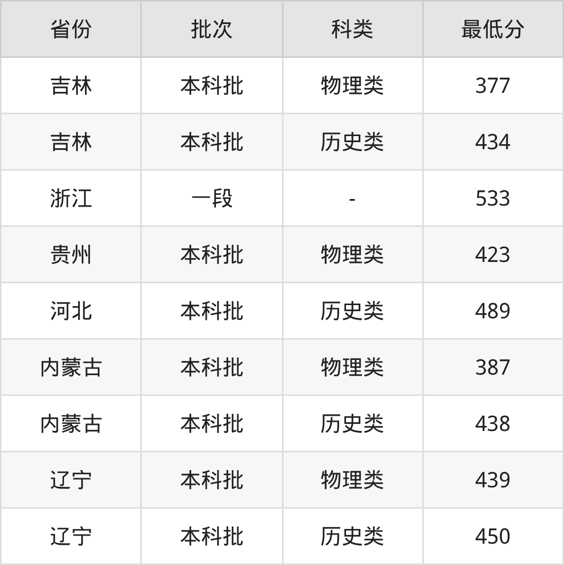 黑龙江财经学院保险学专业录取分数线2025各省汇总显示,省外招生最低分为河北489分、内蒙古387分、辽宁439分、吉林377分等。更多专业分数详情、选科要求、专业简介等均可在正文查阅。