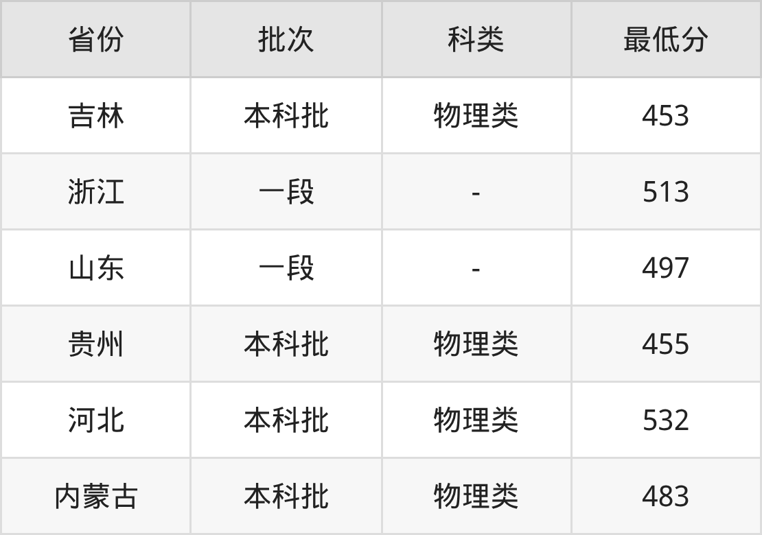 | 批次 | 科类 | 最低分 | 位次 |
