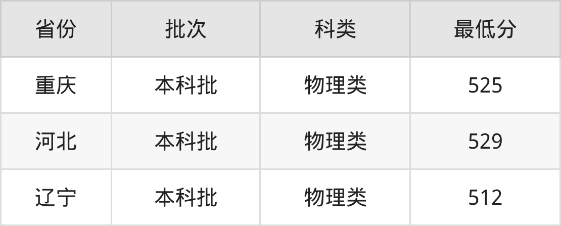 | 批次 | 科类 | 最低分 | 位次 |