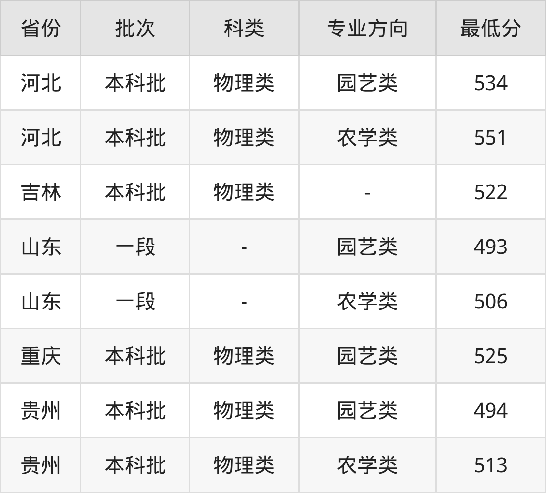 493分(园艺类、位次202145名),506分(农学类、位次170807名);
