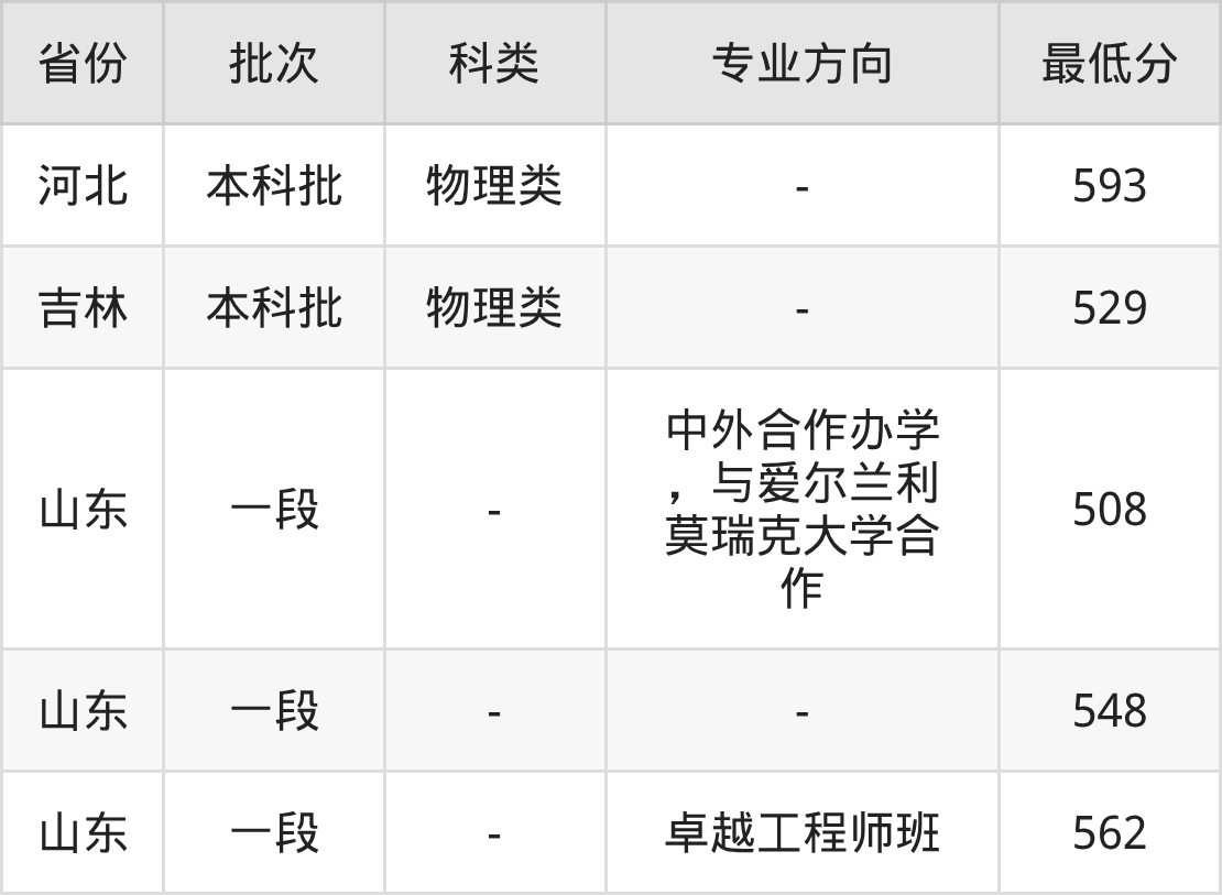 | 批次 | 专业方向 | 最低分 | 位次 |