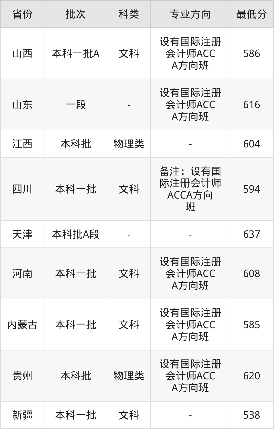 文科586分(设有国际注册会计师ACCA方向班、位次901名);