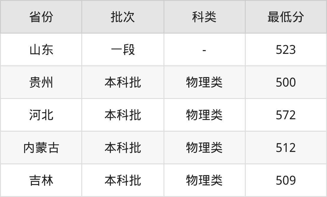 2025年山东理工大学材料成型及控制工程专业在省外招生分数线各不相同,具体如下: