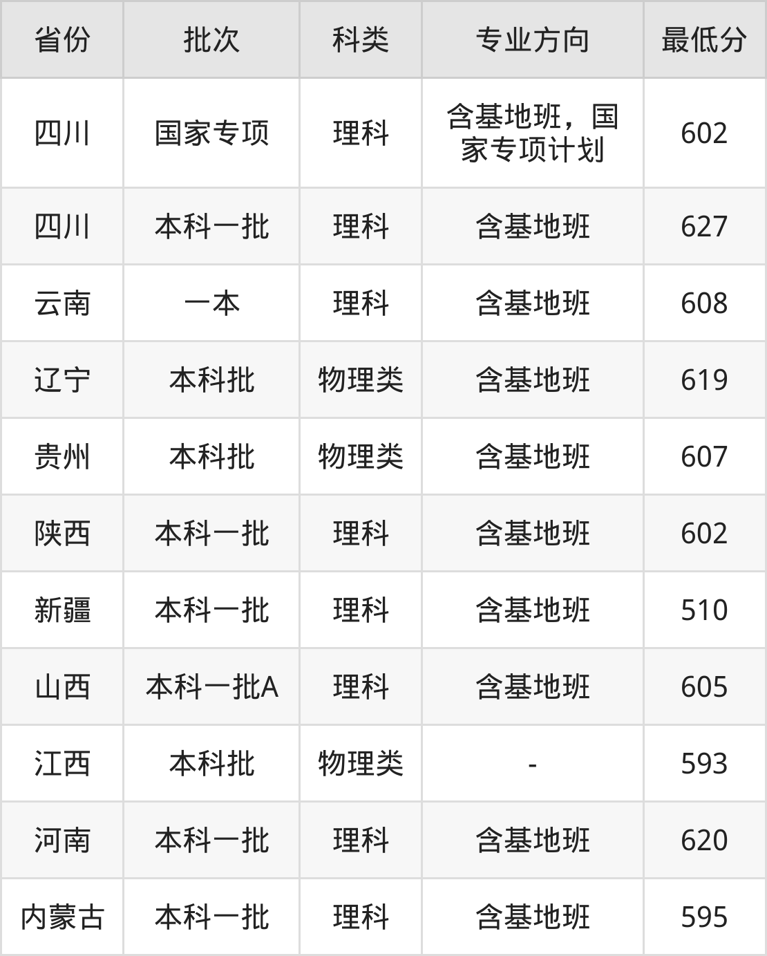理科602分(含基地班,国家专项计划、位次24964名),理科627分(含基地班、位次11962名);