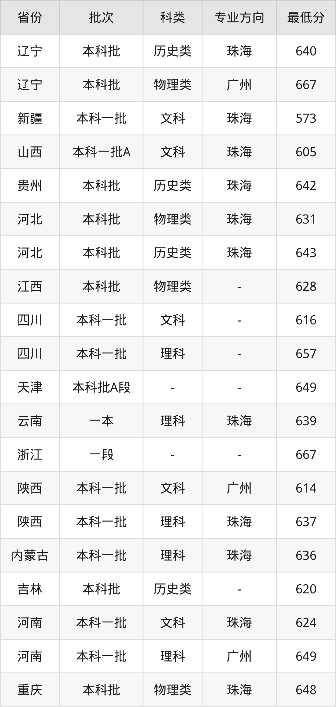 中山大学经济学类专业录取分数线2024各省汇总显示,省外招生最低分为吉林620分、重庆648分、山东639分、贵州642分等。更多专业分数详情、选科要求、专业简介等均可在正文查阅。