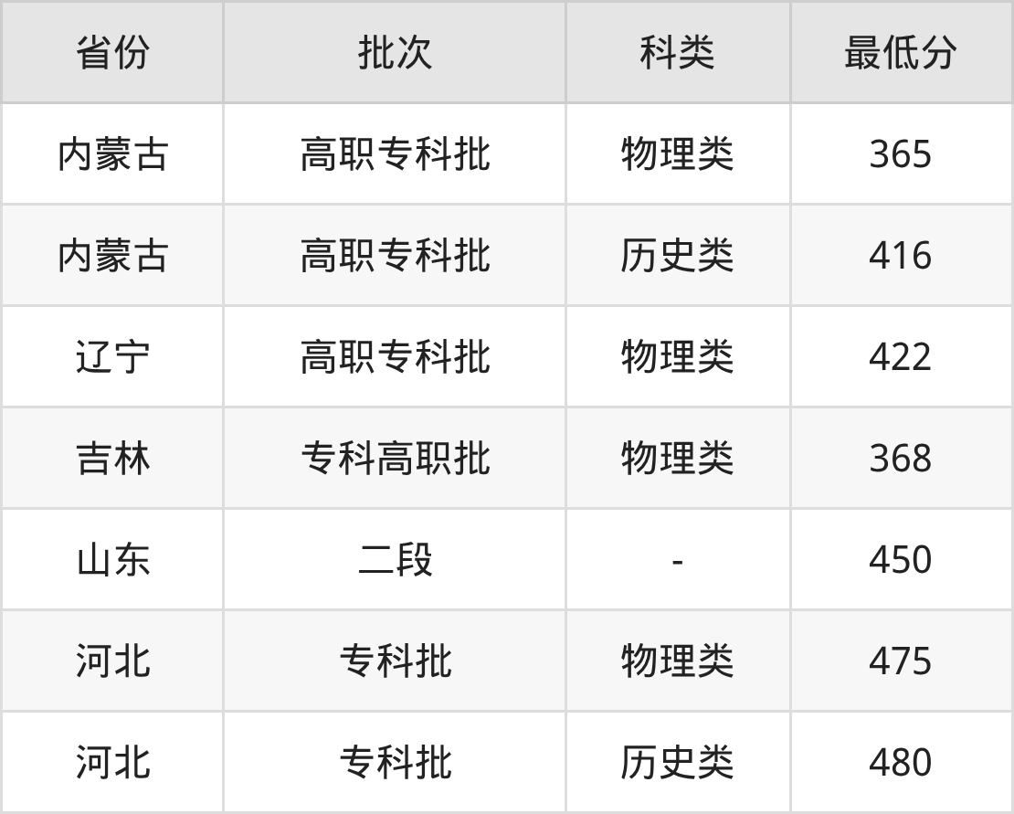 2、吉林省(专科高职批)