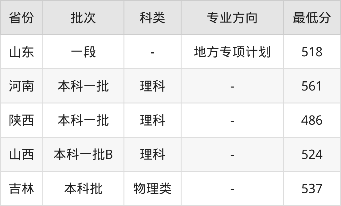 | 批次 | 专业方向 | 最低分 | 位次 |