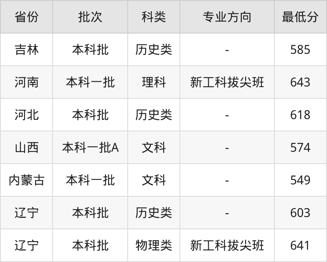 | 批次 | 科类 | 专业方向 | 最低分 | 位次 |