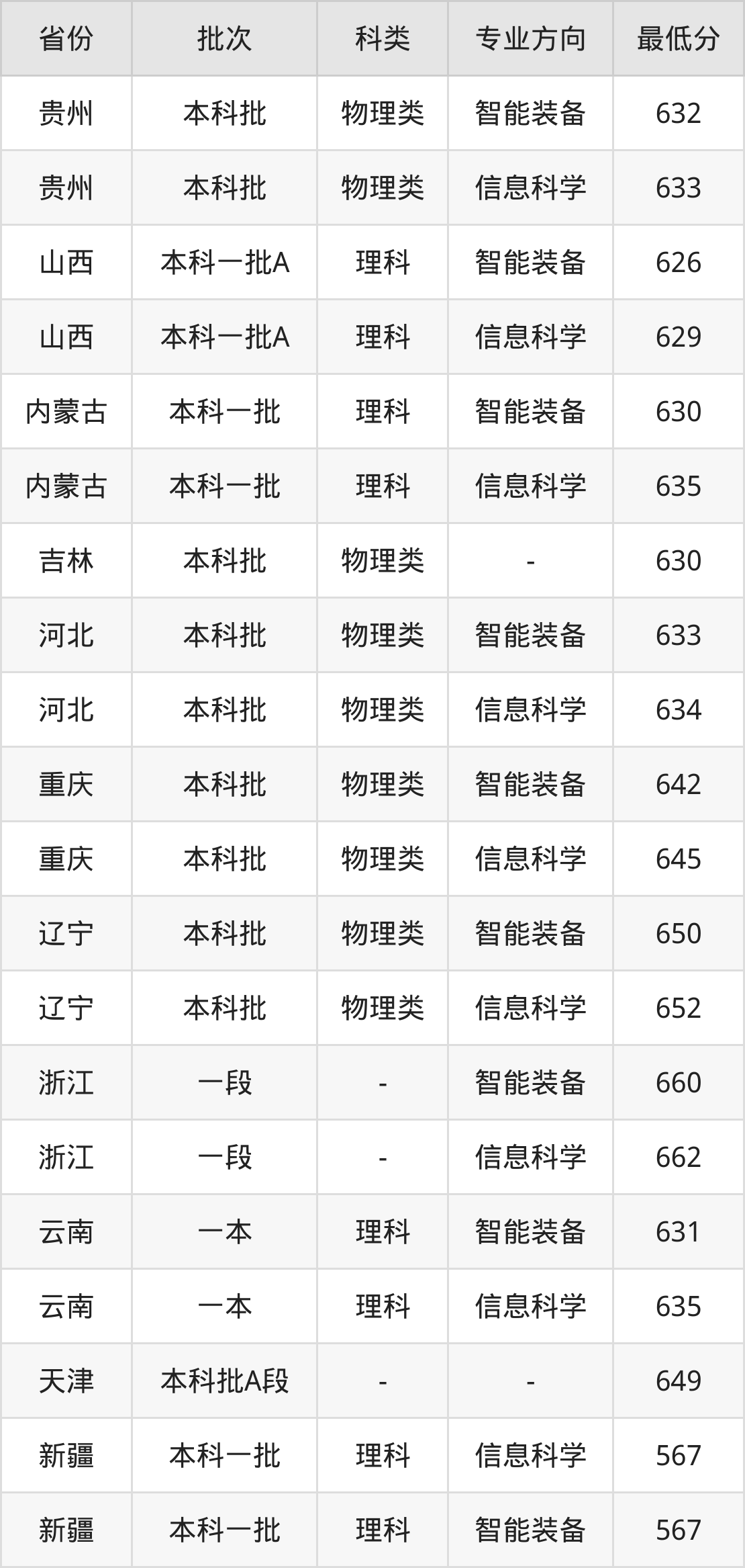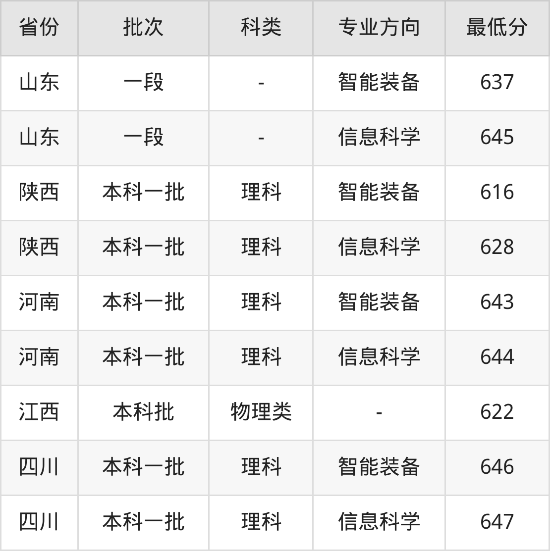 理科630分(智能装备、位次1773名),理科635分(信息科学、位次1494名);