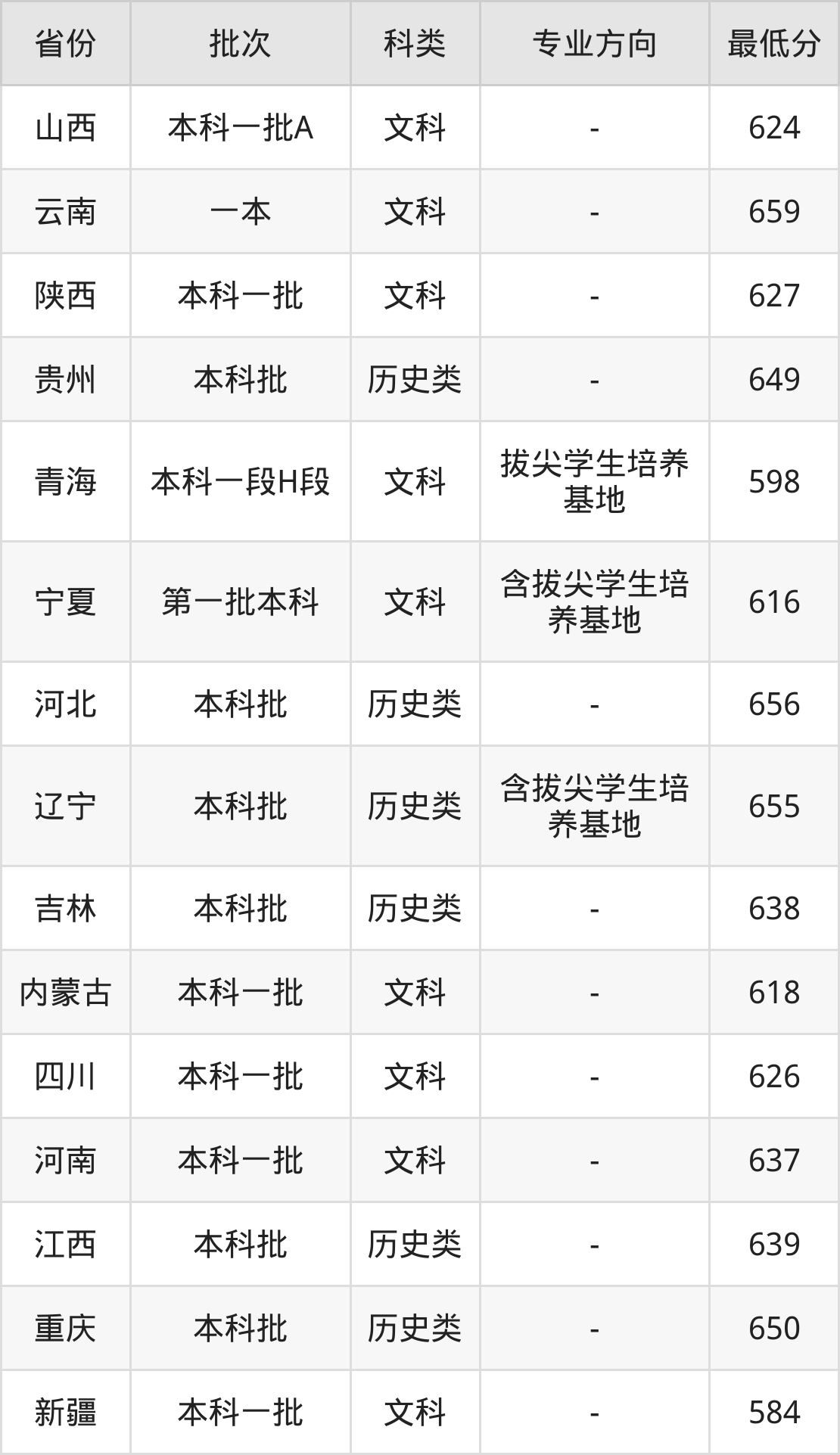 2024年南京大学人文科学试验班专业在省外招生分数线各不相同,具体如下: