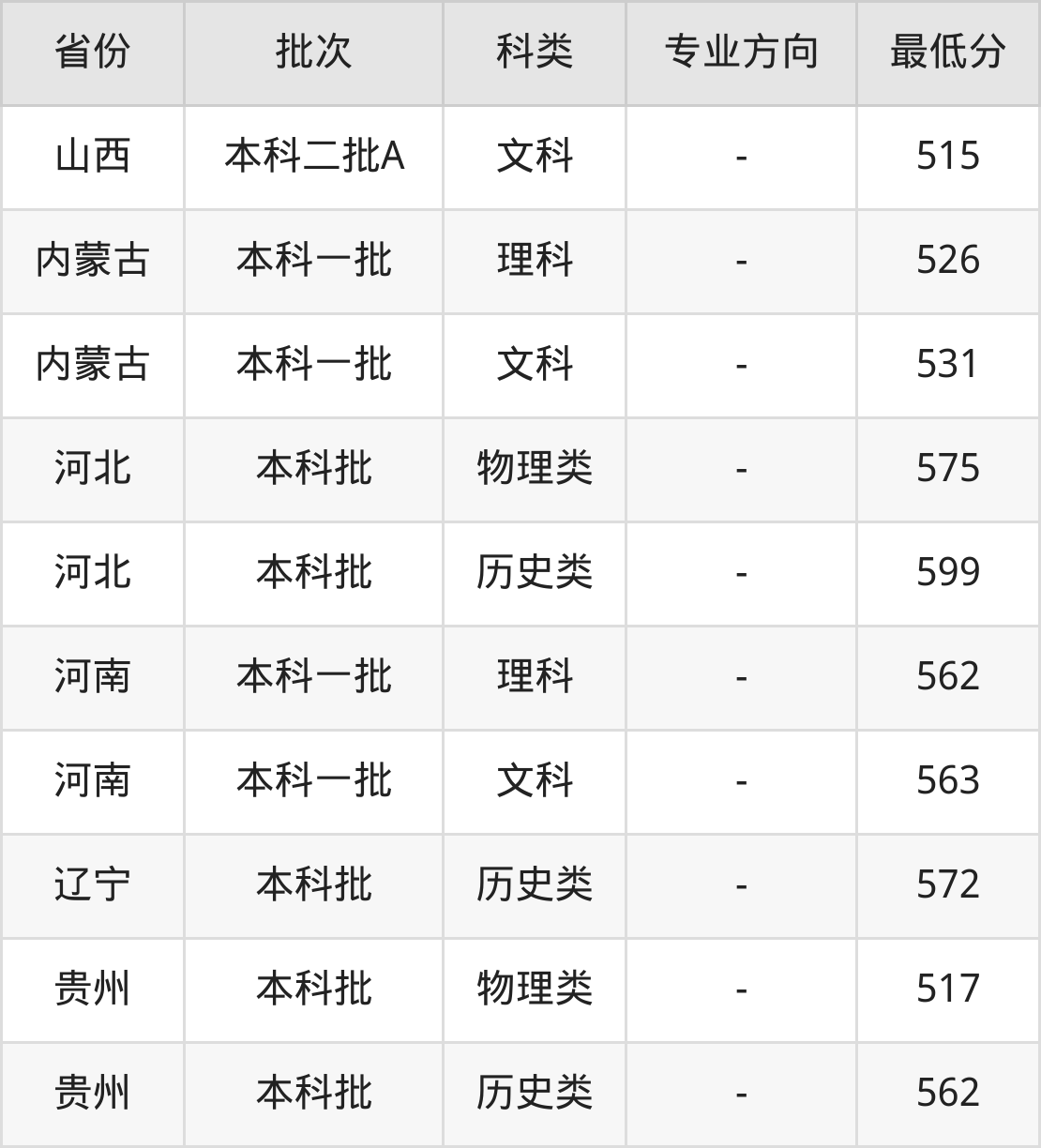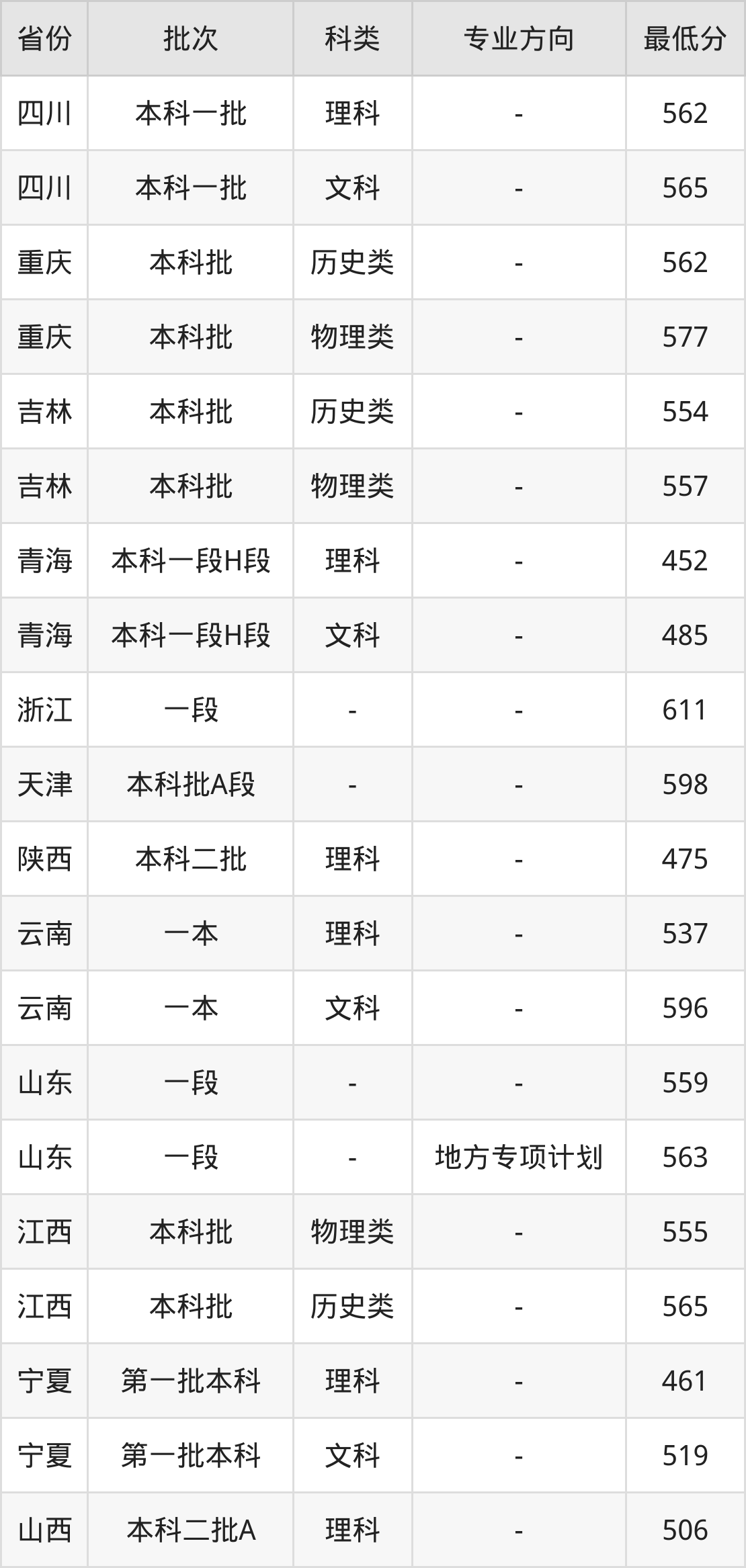 | 批次 | 专业方向 | 最低分 | 位次 |