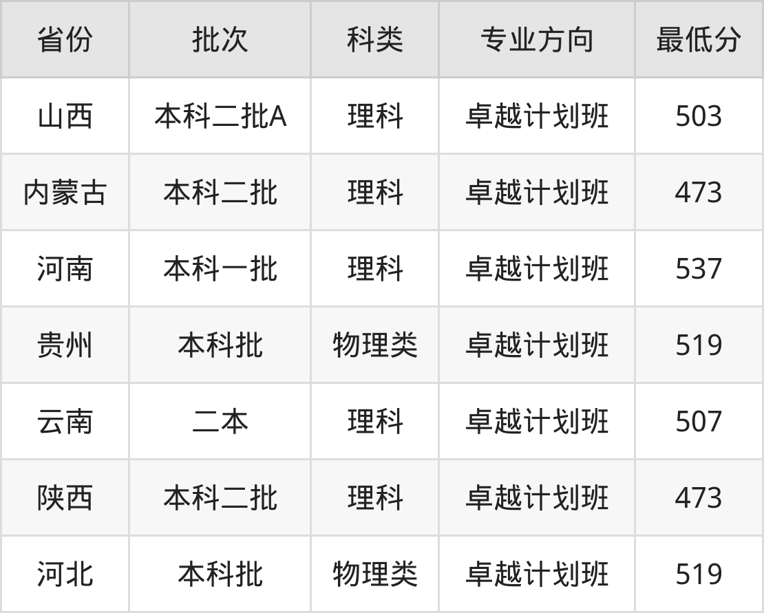 | 本科一批 | 理科 | 卓越计划班 | 537 | 90628 |
