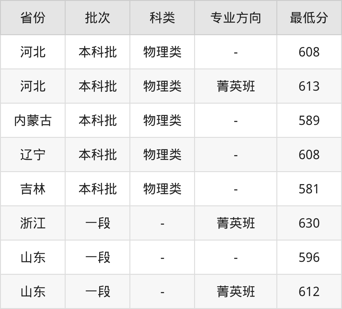 | 批次 | 专业方向 | 最低分 | 位次 |
