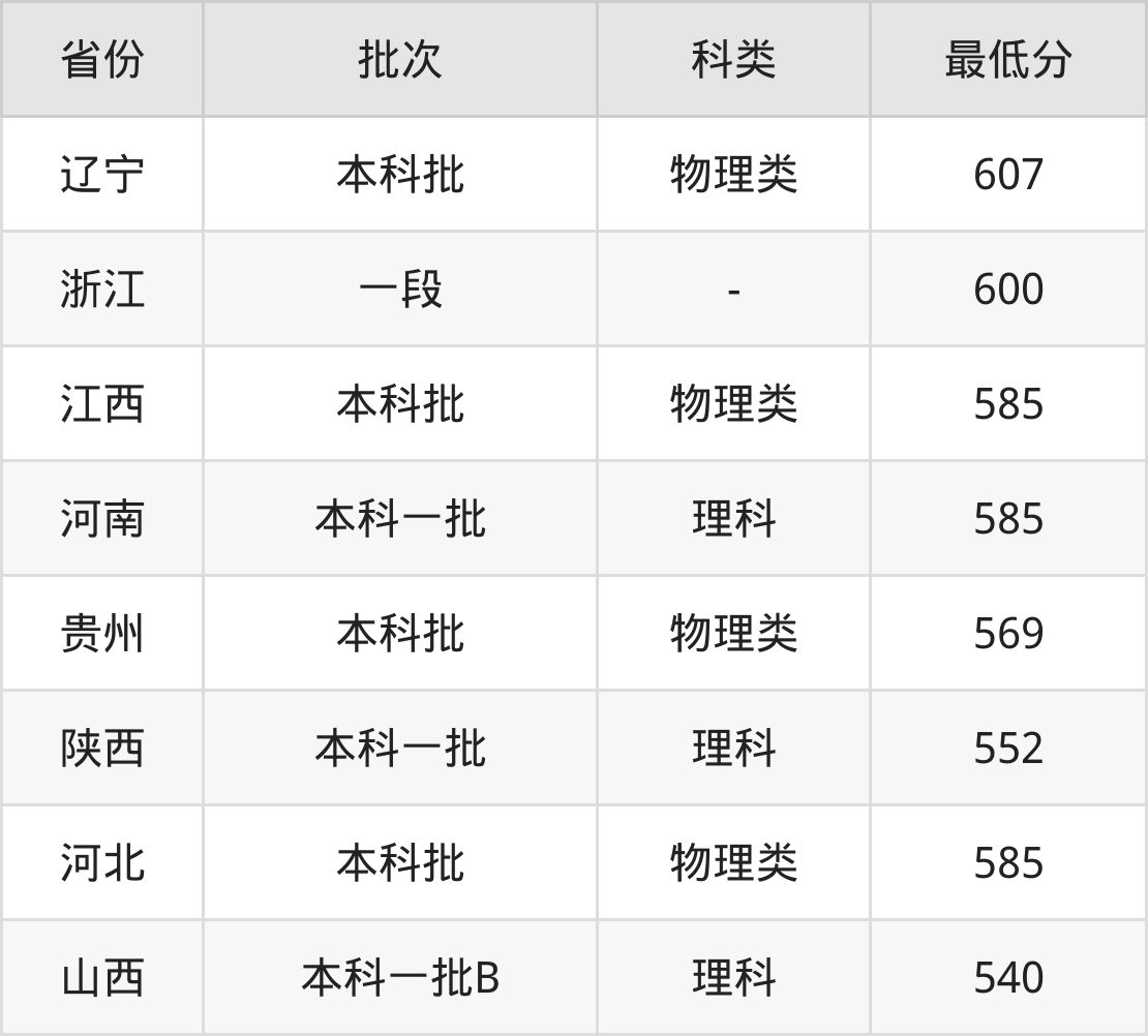 浙江理工大学数学类专业录取分数线2024各省汇总显示,省内招生最低分为600分,省外招生最低分为江西585分、河南585分、贵州569分、陕西552分等。更多专业分数详情、选科要求、专业简介等均可在正文查阅。
