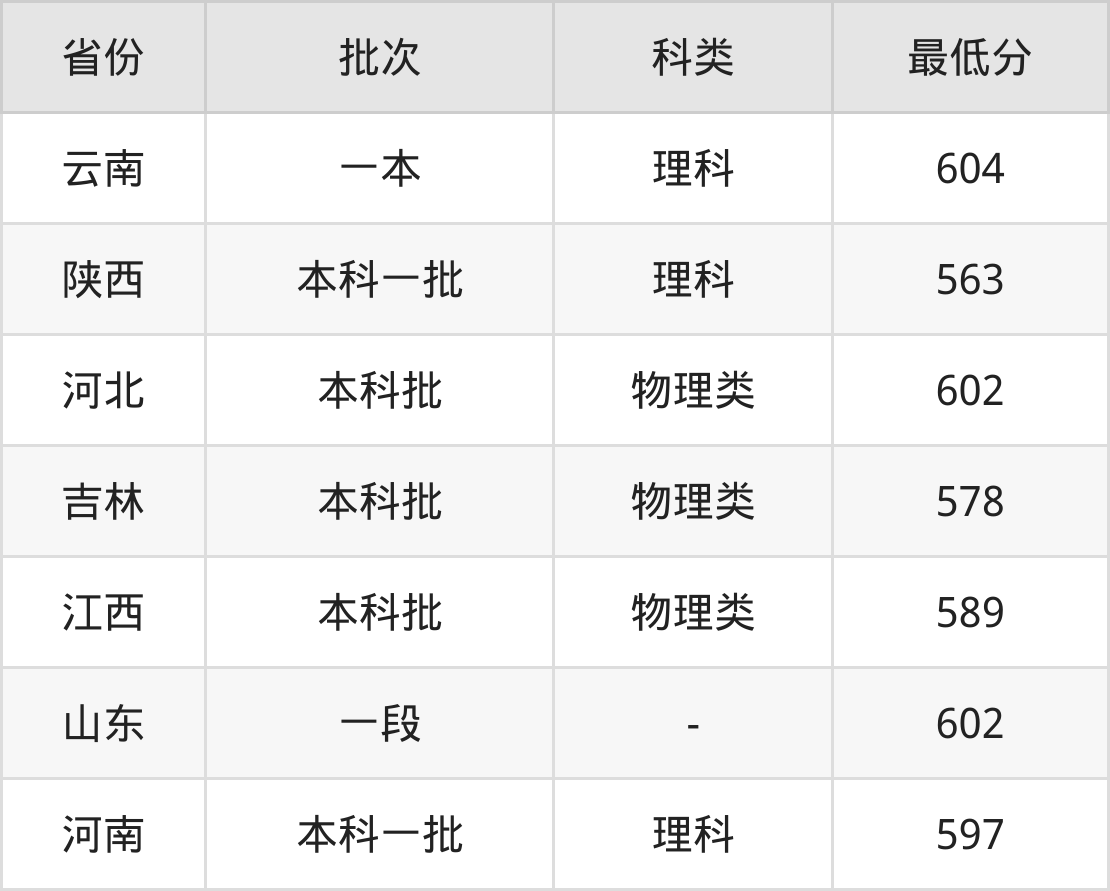 | 批次 | 科类 | 最低分 | 位次 |