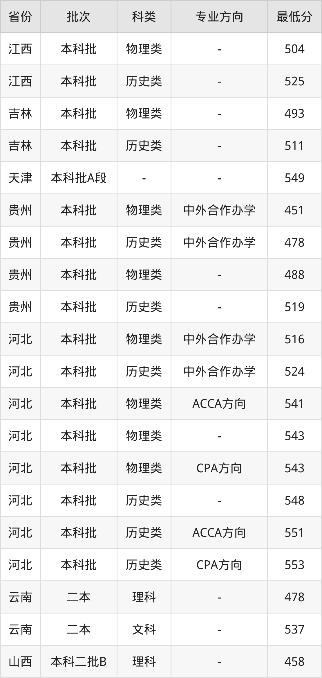 | 本科批 | 历史类 | ACCA方向 | 551 | 15800 |