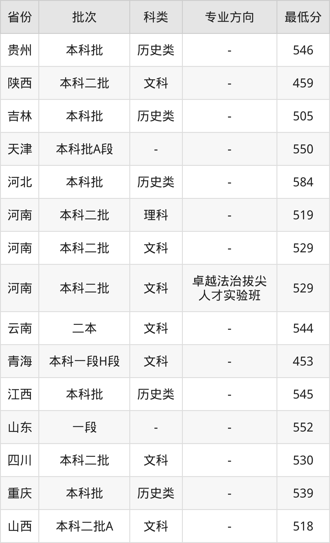 湖北经济学院法学专业录取分数线2024各省汇总显示,省外招生最低分为江西545分、山东552分、四川530分、贵州546分等。更多专业分数详情、选科要求、专业简介等均可在正文查阅。