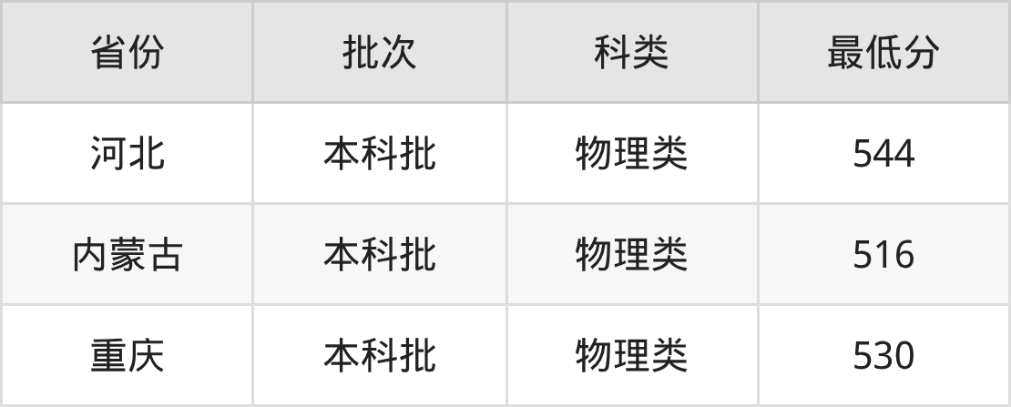 | 批次 | 科类 | 最低分 | 位次 |