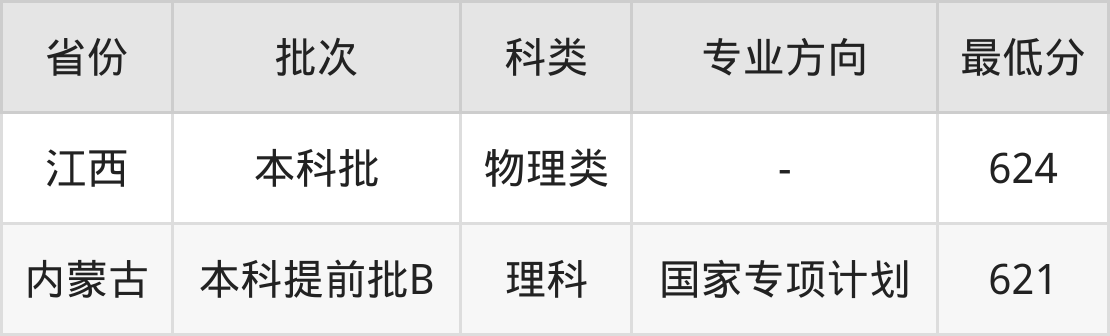 | 物理+化学 | 河北、黑龙江、江苏、 江西 |