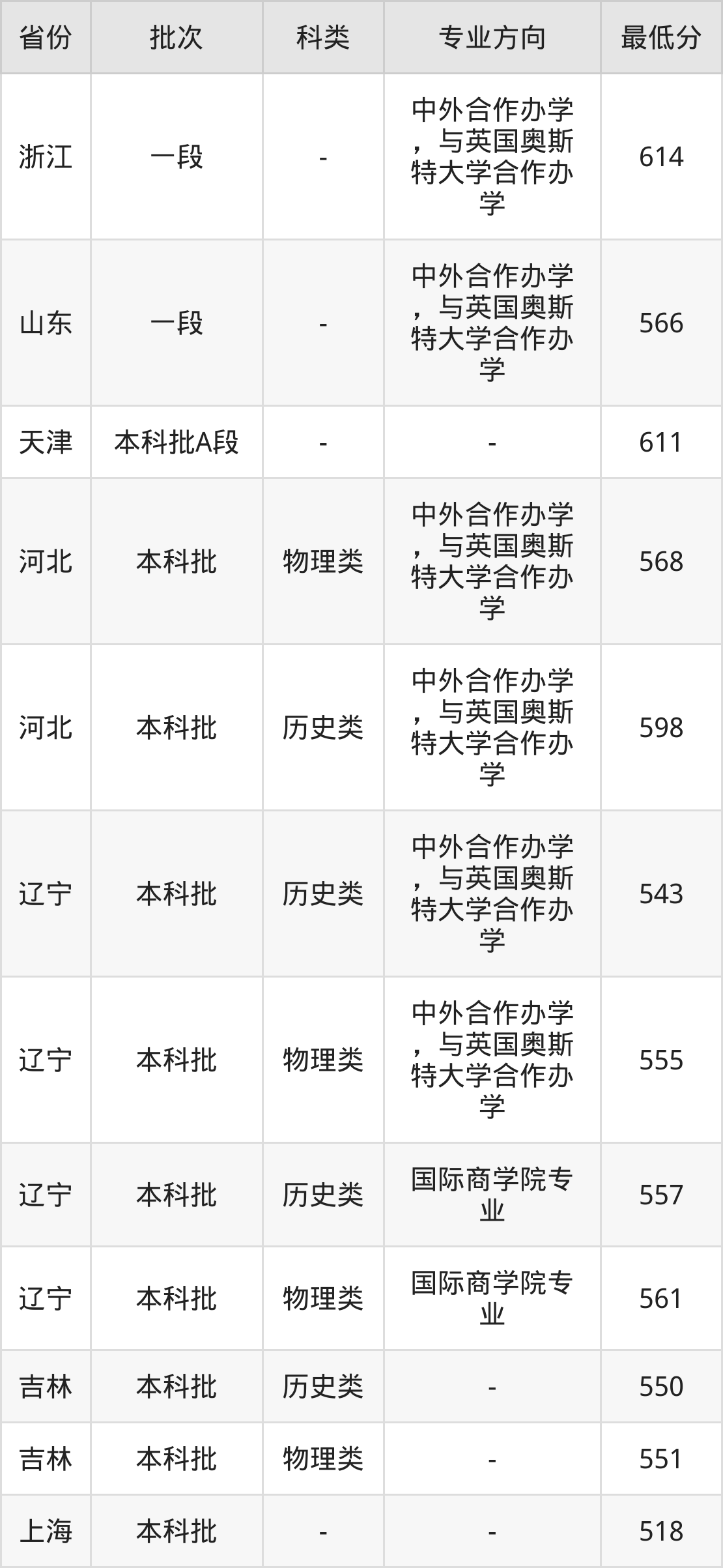 | 本科批 | 历史类 | 中外合作办学 ,与英国奥斯 特大学合作办 学 | 543 | 6836 |