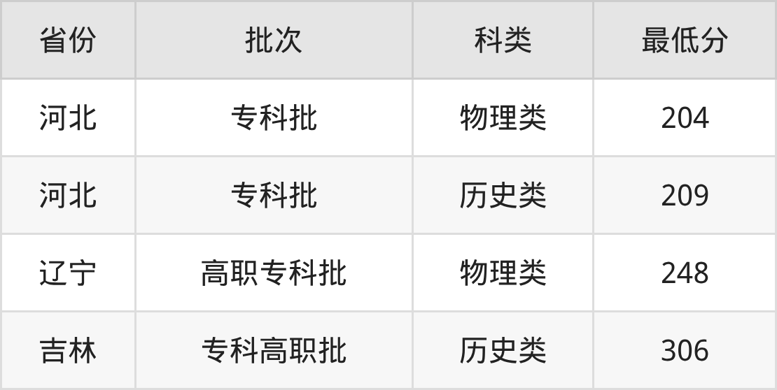 一、吉林职业技术学院康复治疗技术专业分数线
