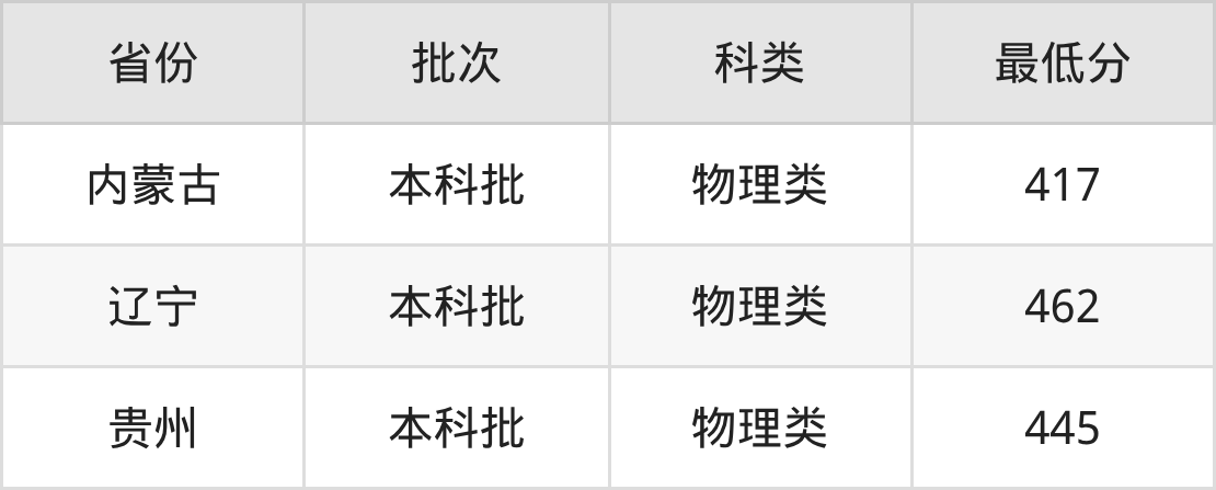 | 批次 | 科类 | 最低分 | 位次 |