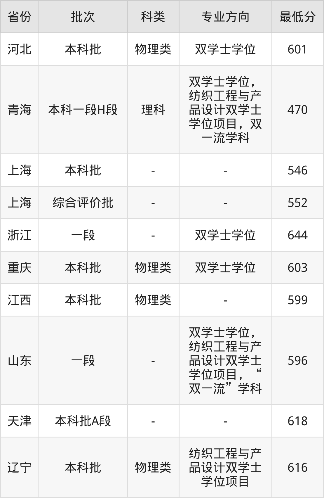 596分(双学士学位,纺织工程与产品设计双学士学位项目,“双一流”学科、位次24817名);