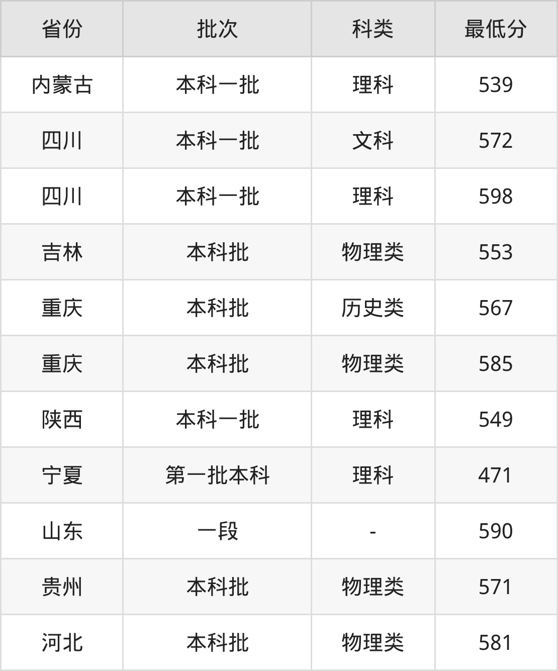 2024年四川农业大学金融学专业在省外招生分数线各不相同,具体如下: