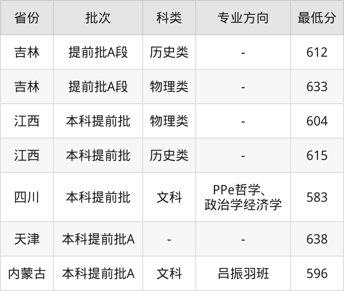 文科583分(PPe哲学、政治学经济学、位次3150名)。