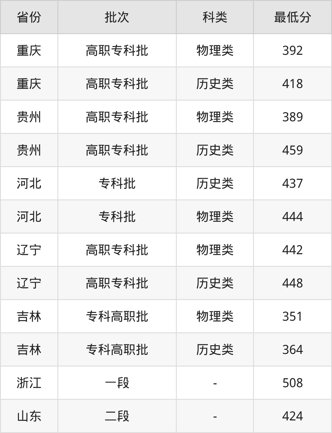 4、贵州省(高职专科批)