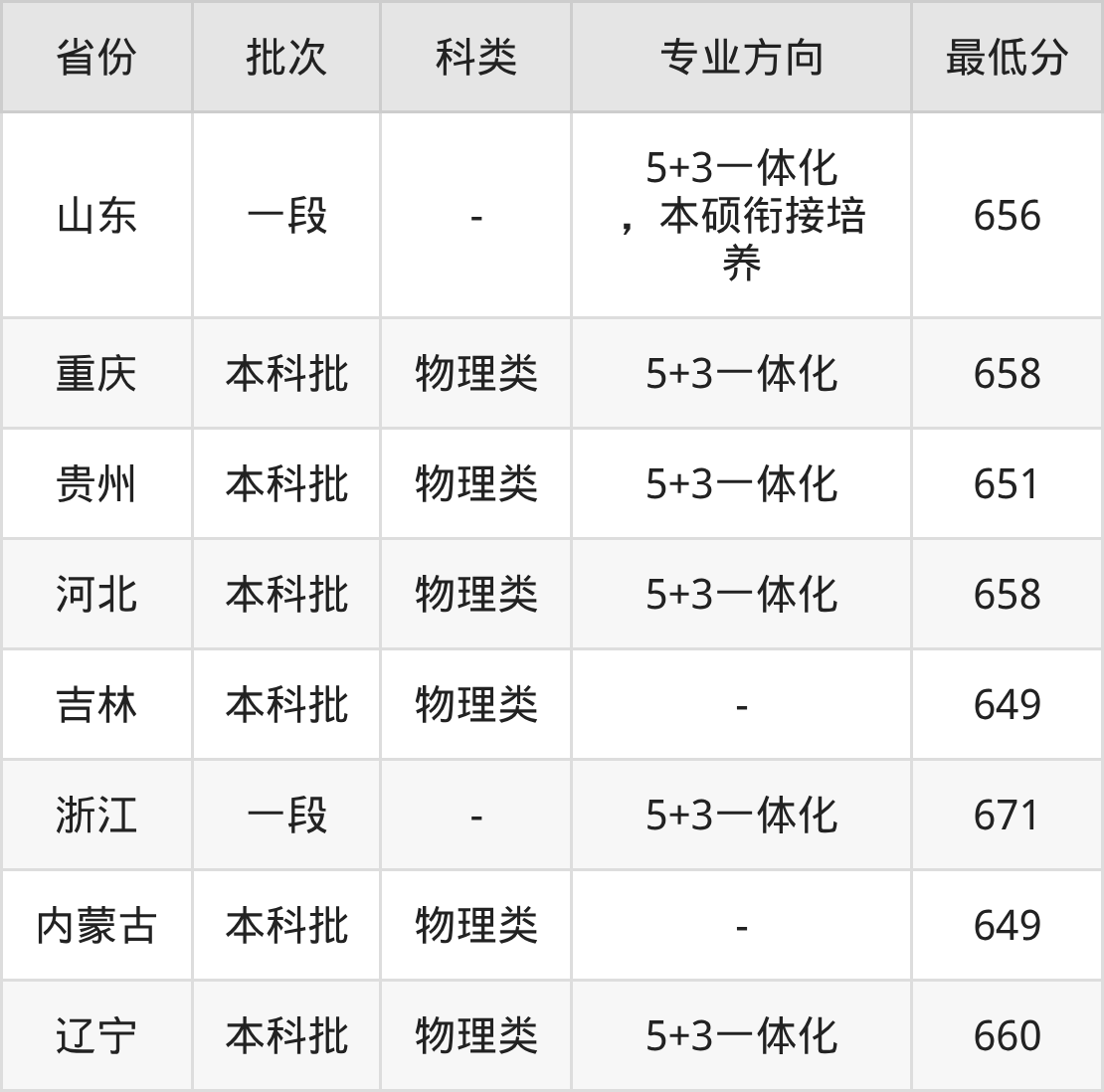 656分(5+3一体化,本硕衔接培养、位次2438名);