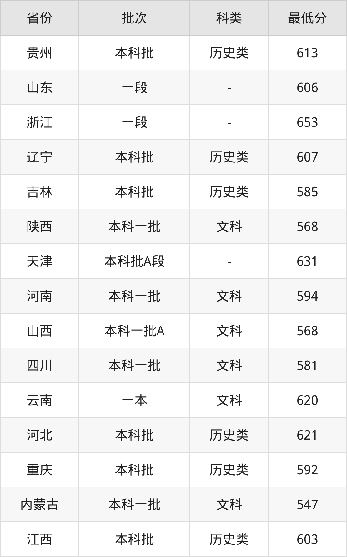 2024年北京科技大学社会科学试验班专业在市外招生分数线各不相同,具体如下: