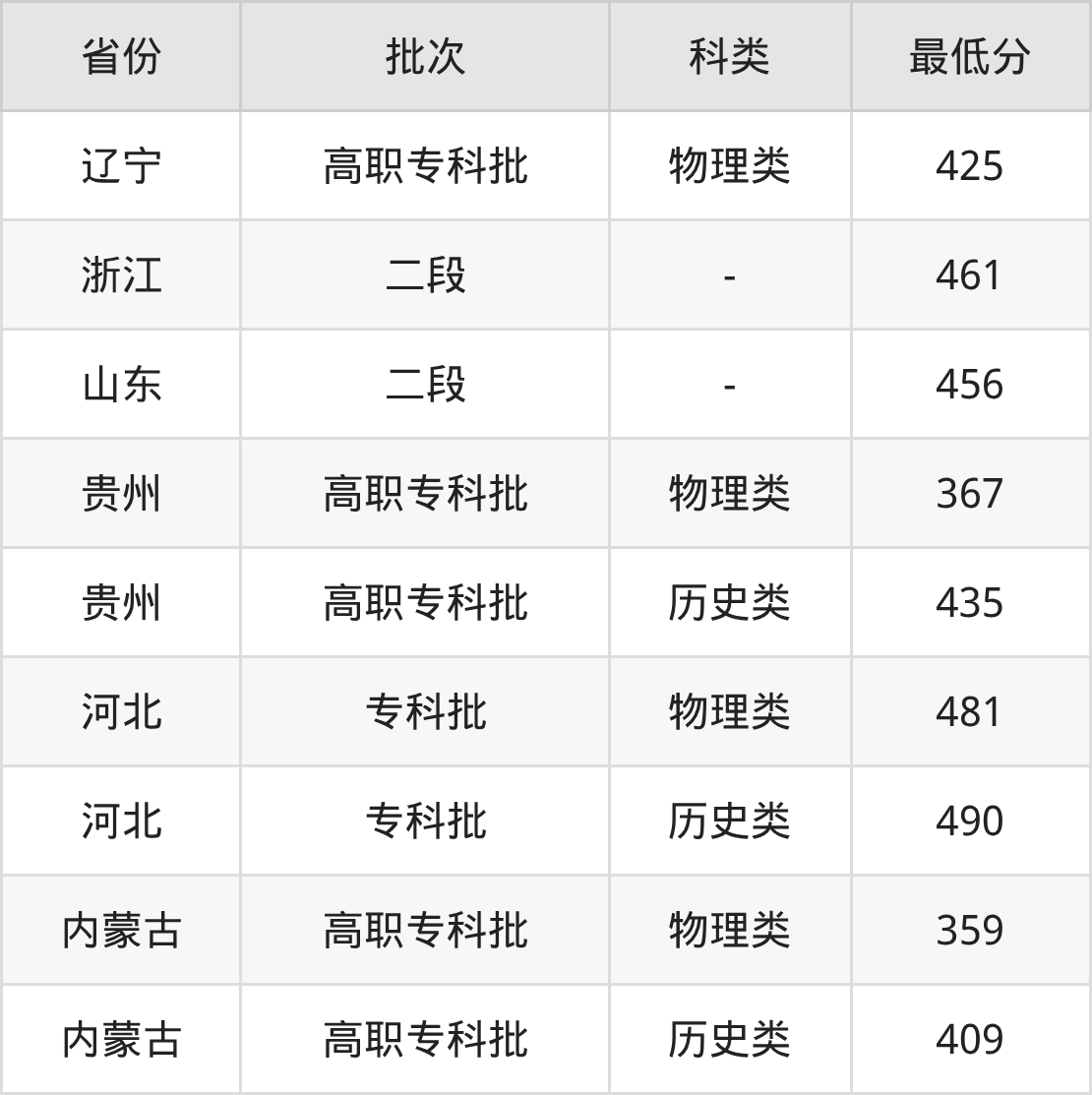 天津现代职业技术学院智慧健康养老服务与管理专业录取分数线2025各省汇总显示,市外招生最低分为内蒙古359分、辽宁425分、浙江461分、山东456分等。更多专业分数详情、选科要求、专业简介等均可在正文查阅。