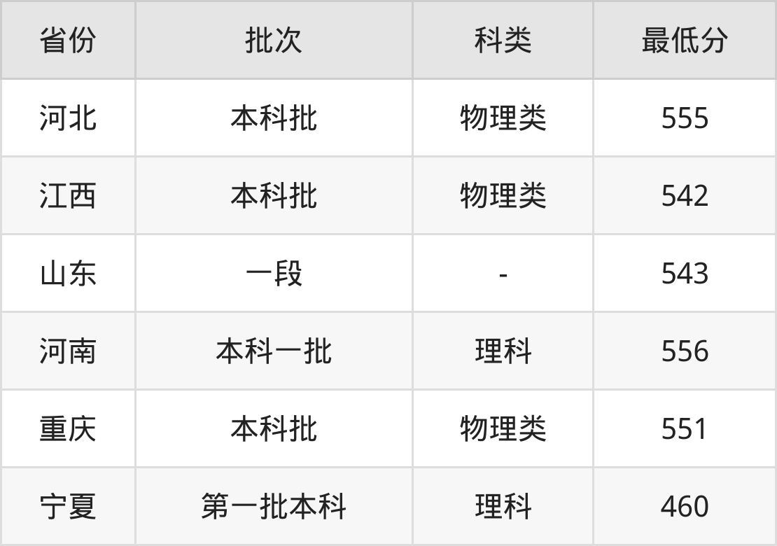 安徽理工大学应用统计学专业录取分数线2024各省汇总显示,省外招生最低分为山东543分、河南556分、重庆551分、宁夏460分等。更多专业分数详情、选科要求、专业简介等均可在正文查阅。