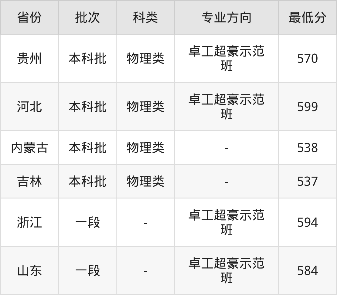 | 批次 | 专业方向 | 最低分 | 位次 |