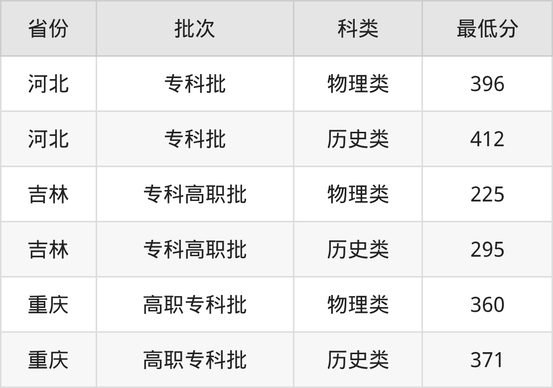 1、吉林省(专科高职批)