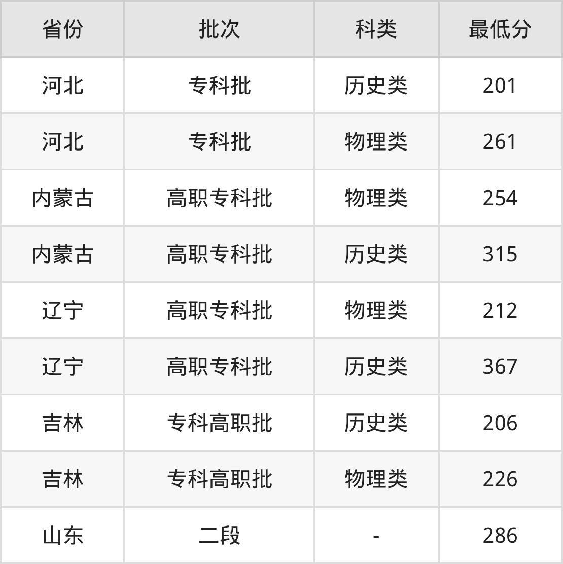 长春东方职业学院护理专业录取分数线2025各省汇总显示,省内招生最低分为206分,省外招生最低分为河北201分、内蒙古254分、辽宁212分、山东286分。更多专业分数详情、选科要求、专业简介等均可在正文查阅。