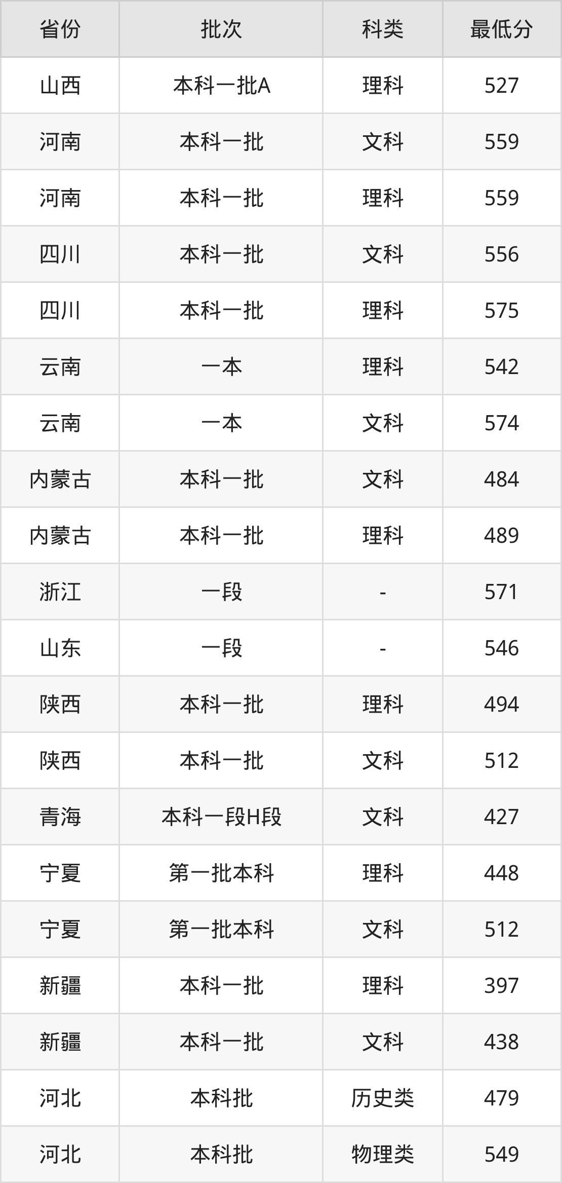 2024年石河子大学护理学专业在维吾尔自治区外招生分数线各不相同,具体如下: