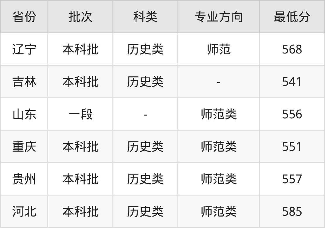 曲阜师范大学历史学专业录取分数线2025各省汇总显示,省内招生最低分为556分,省外招生最低分为河北585分、辽宁568分、吉林541分、重庆551分等。更多专业分数详情、选科要求、专业简介等均可在正文查阅。