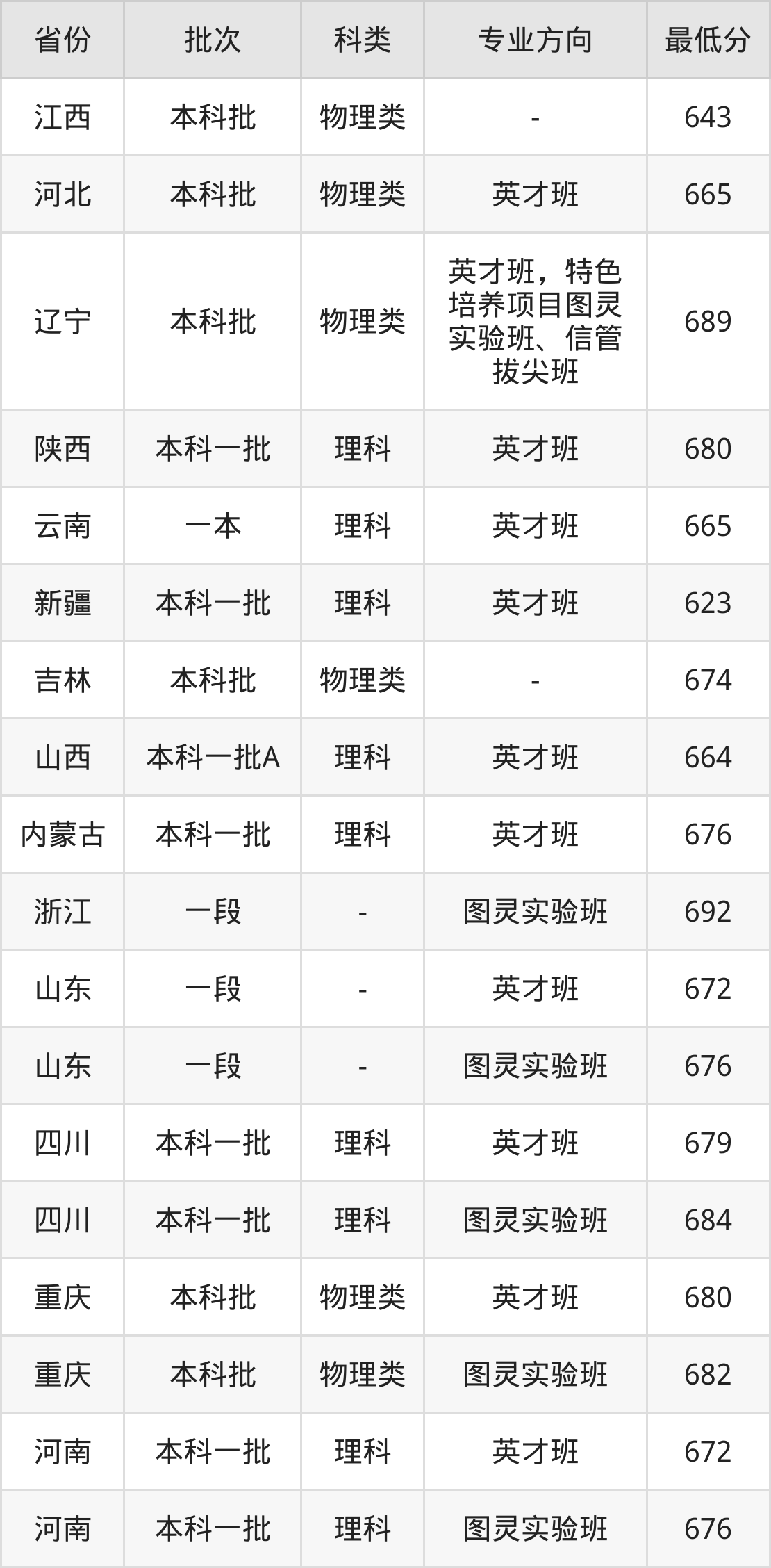 物理类689分(英才班,特色培养项目图灵实验班、信管拔尖班、位次289名);