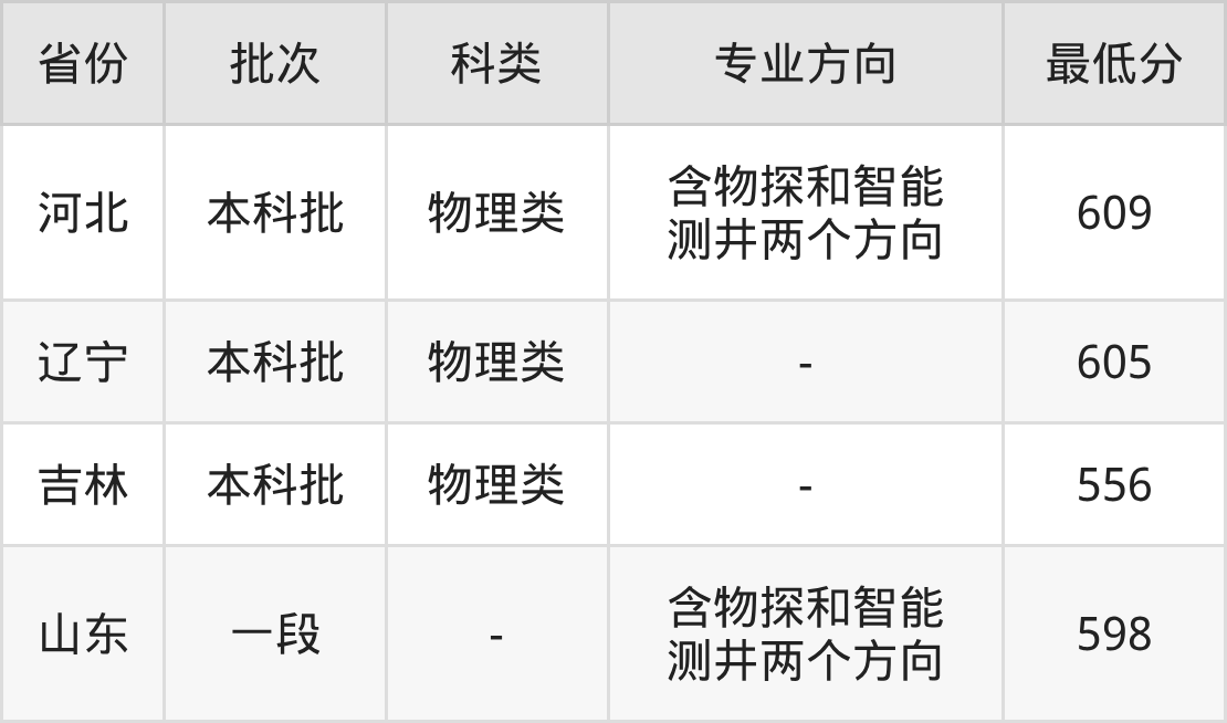 2025年中国石油大学(华东)勘查技术与工程专业在省外招生分数线各不相同,具体如下: