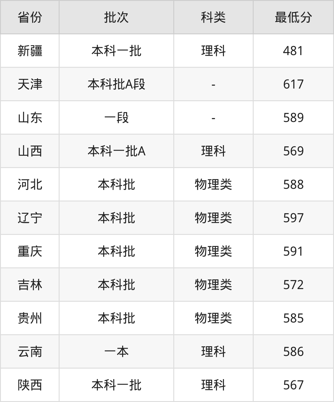西北大学地理科学类专业录取分数线2024各省汇总显示,省内招生最低分为567分,省外招生最低分为重庆591分、贵州585分、云南586分、新疆481分等。更多专业分数详情、选科要求、专业简介等均可在正文查阅。