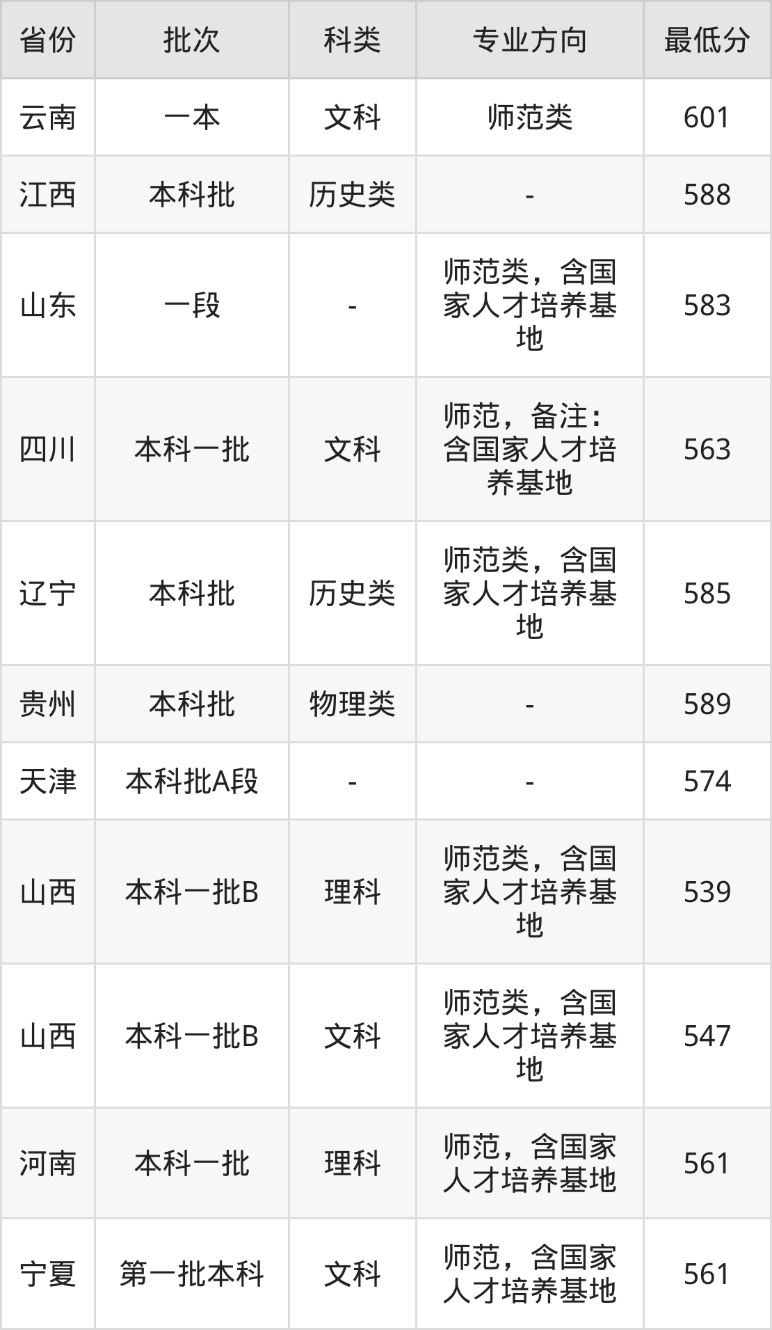 理科539分(师范类,含国家人才培养基地、位次27961名),文科547分(师范类,含国家人才培养基地、位次3604名);