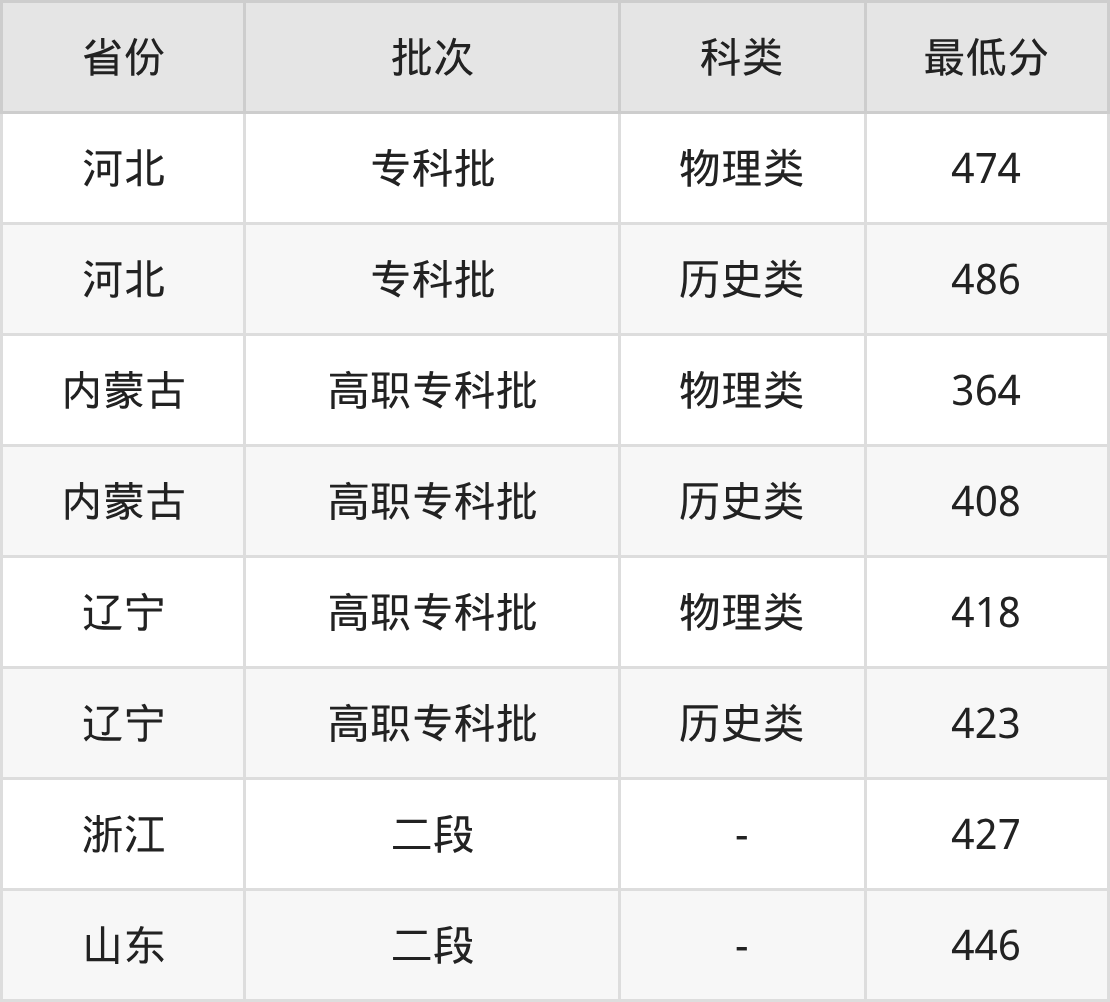 天津现代职业技术学院包装策划与设计专业录取分数线2025各省汇总显示,市外招生最低分为河北474分、内蒙古364分、辽宁418分、浙江427分等。更多专业分数详情、选科要求、专业简介等均可在正文查阅。