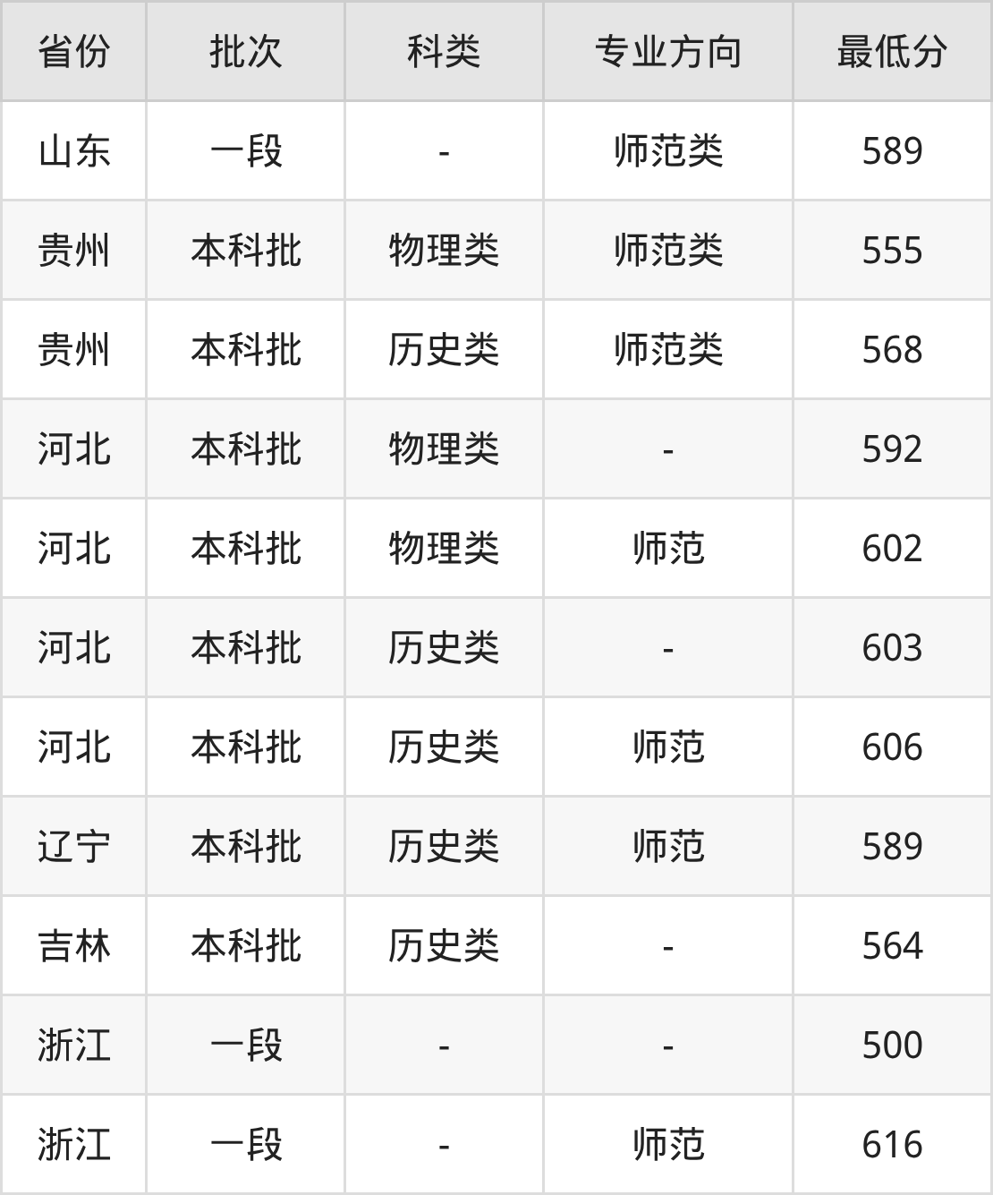 物理类592分(位次33539名),物理类602分(师范、位次25574名),历史类603分(位次5338名),历史类606分(师范、位次4745名);