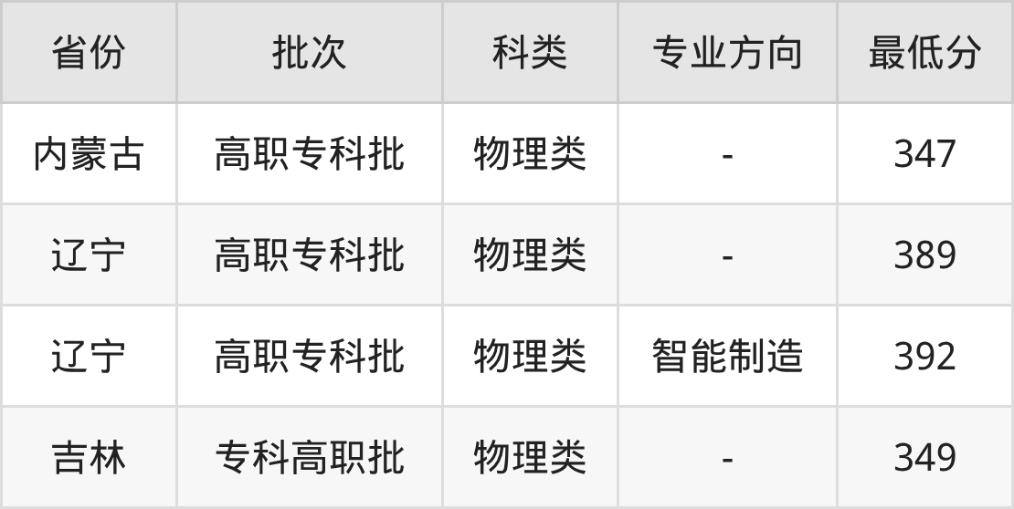 | 高职专科批 | 物理类 | 智能制造 | 392 | 108416 |