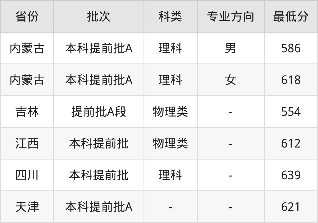 1、内蒙古自治区(本科提前批A)